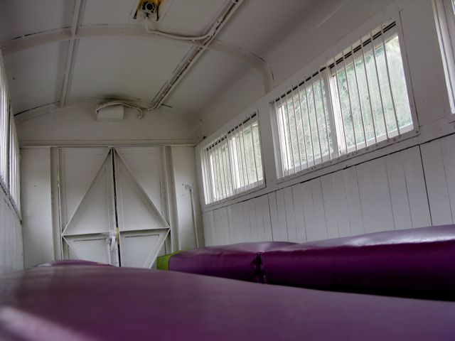 運転席。横向きに座るんですねー。珍しいな。