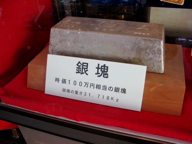 なぜか銀塊も展示。しかし、100万円でこのサイズなら、1億円の銀塊とか