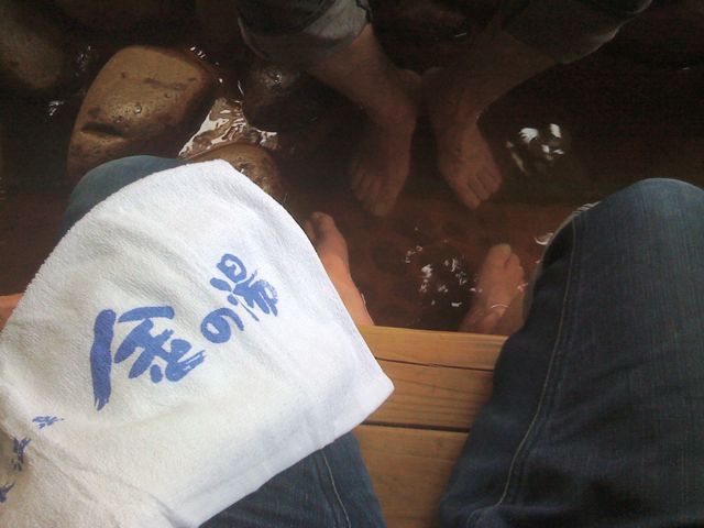 アイス天婦羅炭酸せんべいと腹拵えも終えたので、さぁ、いざ足湯へ。