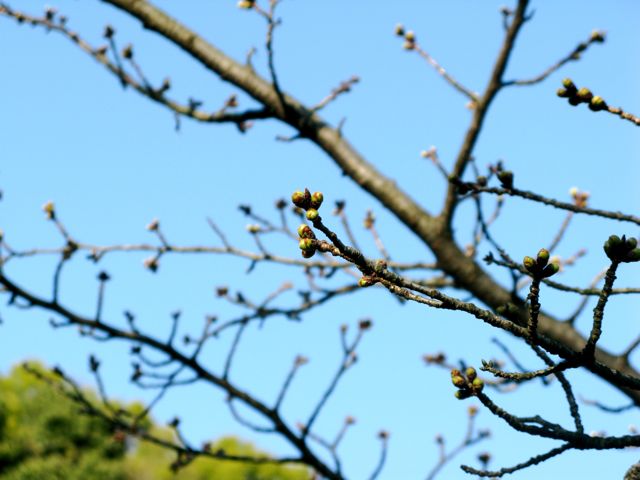 庭園では、桜の蕾が春を待っていました。きっと時期になると、花見で